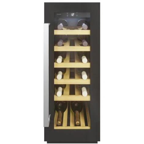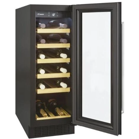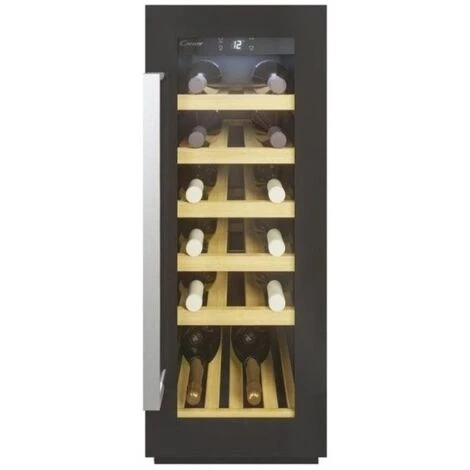 Candy DiVino CCVB 30/1. Posizionamento dell’apparecchio: Libera installazione, Colore struttura: Nero, Colore interno: Nero. Capacità bottiglie: 20 bottiglia/bottiglie, Intervallo temperatura (zona 1): 5 – 18 °C, Classe emissione rumore: C. Classe efficienza energetica: F, Consumo energetico annuo: 98 kWh, Scala di efficienza energetica: Da A a G. Tipo di controllo: Pulsanti, Tipo di lampada: LED, Applicazioni per il controllo supportate: hOn. Larghezza: 295 mm, Profondità: 562 mm, Altezza: 813 mm