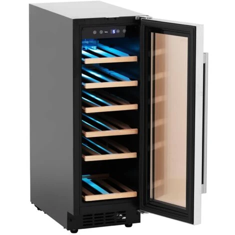 Con la cantinetta frigo per vino puoi impostare la temperatura adeguata e assicurare una conservazione ottimale del vino. Naturalmente puoi stivare anche altre bevande all’interno del frigo e presentarle in un modo particolarmente sofisticato grazie all’illuminazione a LED bianca. Il frigorifero per vino e bevande, con una capacità di 56 litri, ha spazio sufficiente per contenere fino a 46 bottiglie di vino. Sui 6 scaffali conservi sempre il vino in modo professionale. Con il display a LED è possibile regolare la temperatura con precisione in un intervallo tra 5 e 22 °C. L’appariscente illuminazione al LED è sicuramente il punto forte di questa cantinetta grazie a cui è possibile presentare vini pregiati. La porta è in vetro temperato a due strati, ciò la rende particolarmente resistente. Royal Catering ti offre un’attrezzatura perfetta per goderti il tuo vino!
