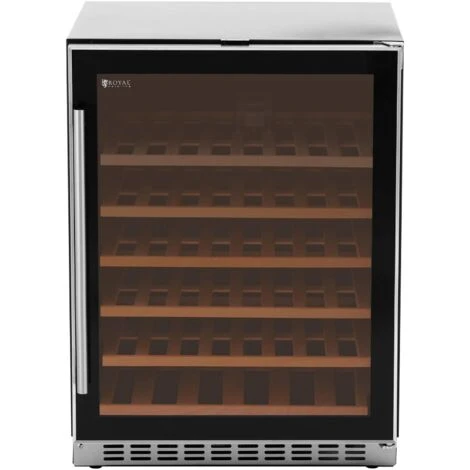 Con la cantinetta frigo per vino puoi impostare la temperatura adeguata e assicurare una conservazione ottimale del vino. Naturalmente puoi stivare anche altre bevande all’interno del frigo e presentarle in un modo particolarmente sofisticato grazie all’illuminazione a LED bianca. Il frigorifero per vino e bevande, con una capacità di 135 litri, ha spazio sufficiente per contenere fino a 46 bottiglie di vino. Sui 6 scaffali conservi sempre il vino in modo professionale. Con il display a LED è possibile regolare la temperatura con precisione in un intervallo tra 5 e 22 °C. L’appariscente illuminazione al LED è sicuramente il punto forte di questa cantinetta grazie a cui è possibile presentare vini pregiati. La porta è in vetro temperato a due strati, ciò la rende particolarmente resistente. Royal Catering ti offre un’attrezzatura perfetta per goderti il tuo vino!