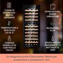 Klarstein Barossa 73 Duo – Frigorifero Per Vini, 2 Zone, 192 Litri, 73 Bottiglie, Display Touch