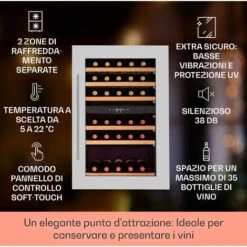 Klarstein Vinsider 35D Cantinetta Frigo A Incasso 128 Litri 41 Bottiglie Di Vino 2 Zone