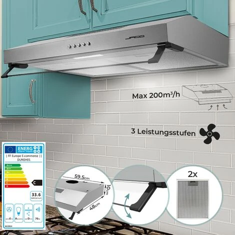 Godetevi appieno le vostre esperienze culinarie in un’atmosfera di aria fresca con la nostra cappa aspirante in acciaio inossidabile dal design classico. Tre impostazioni di velocità consentono una cottura inodore e ogni intensità dipende dal modo in cui si sta preparando il cibo. Questa cappa da cucina può essere utilizzata per il ricircolo interno – l’aria viene fatta passare attraverso un filtro a carbone attivo, pulita e reindirizzata in cucina, oppure estrazione esterna – gli odori e i vapori di cottura vengono semplicemente inviati all’esterno con l’aiuto di un kit di canalizzazione (non incluso).