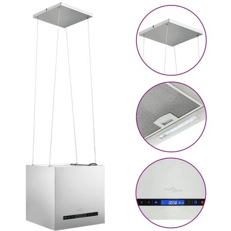 La nostra cappa a isola sospesa silenziosa e potente è l’ideale per aspirare efficacemente fumi, grasso, umidità e persino calore dalla vostra cucina. Il suo involucro in acciaio inossidabile arricchirà la vostra cucina con un aspetto elegante e moderno. Questa cappa ad isola è dotata di un filtro antigrasso lavabile a 3 strati in alluminio per proteggere l’interno della cappa aspirante dal grasso. Le luci a LED integrate forniscono illuminazione per facilitare la cottura e anche per creare un piacevole ambiente nella vostra cucina. La cappa aspirante a 3 velocità ha un display LCD sensibile al tocco con pulsanti del sensore per garantire il pieno controllo della velocità di estrazione. Inoltre, il filtro al carbone aiuta a purificare l’aria e a rilasciare l’aria pulita in cucina. Questa cappa a isola sospesa si deve montare al soffitto con una piastra in acciaio inossidabile. I cavi metallici in acciaio possono essere regolati per sollevare o abbassare la cappa.