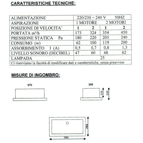 Il Gruppo aspirante filtrante dotato di 2 motori in asincrono monofase 2V 240 V 50 HZ, luce ed un filtro alluminio lavabile.
