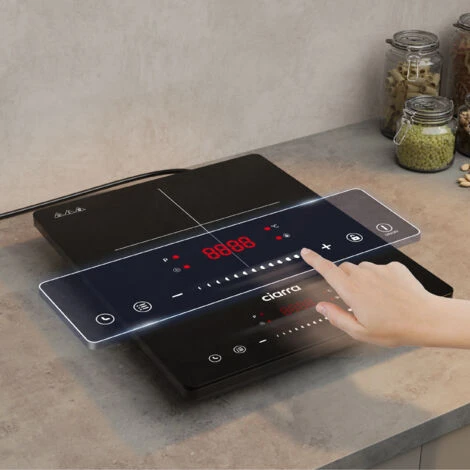 CIARRA Il piano cottura a doppia induzione ha un pannello in vetro cristallo lucido nero e un tocco intelligente, un ottimo partner per la tua cucina!