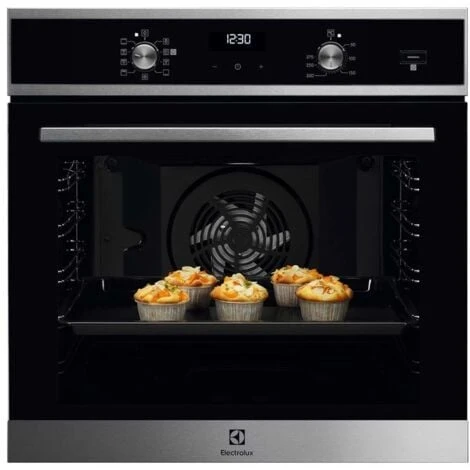 Electrolux EOD5H40X. Dimensione del forno: Media, Tipo di forno: Forno elettrico, Capacità interna forno totale: 72 L. Colore del prodotto: Nero, Acciaio inossidabile, Tipo di controllo: Manopola, Touch, Materiale della scocca: Acciaio inossidabile. Tipo di orologio: Elettronico, Tipo di timer: Digitale, Modalità di impostazione del timer: Tempo di cottura, Tempo di fine cottura, Timer. Classe efficienza energetica: A, Consumo energetico (convenzionale): 0,93 kWh, Consumo energetico (convezione forzata): 0,81 kWh. Tipo di lampada: Alogena