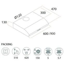 Cappuccio Visiera 60cm 368 M3/h Bianco – Fht6137w – Faure