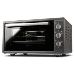 Forno elettrico Capacità: 10L Termostato: 100.~230. Cottura statica Impostazioni Timer 60min. con autospegnimento e segnale acustico. Potenza: 650W Alimentazione: 220-240V ~ 50/60Hz Accessori: Teglia, Griglia, manico griglia Dimensioni prodotto: 360*220*200mm
