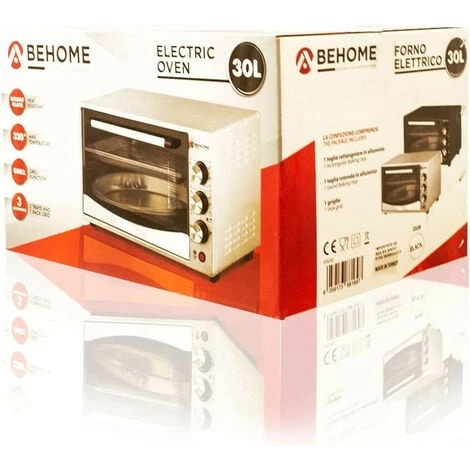 Behome FSV30 – Forno Elettrico Ventilato, Autopulente, Smaltato, Temperatura fino a 320° Doppio Vetro con Luce Interna e Timer 2 Teglie e 1 Griglia, 30 L