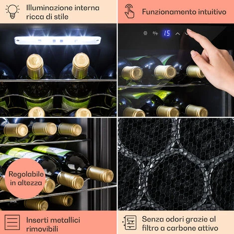 16 bottiglie di vino: vano interno da 42 litri di volume