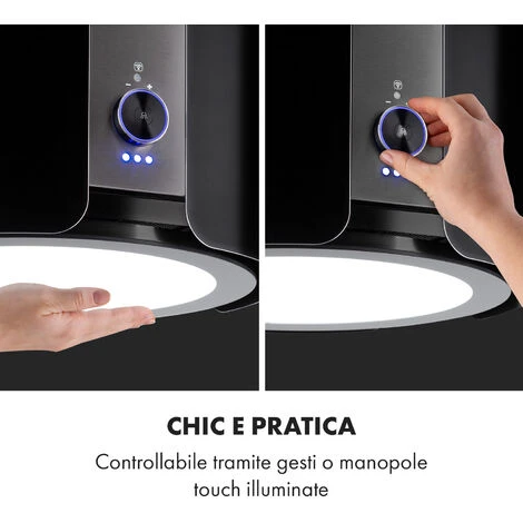 Chic e pratica: controllabile tramite manopola touch illuminata e controllo gestuale