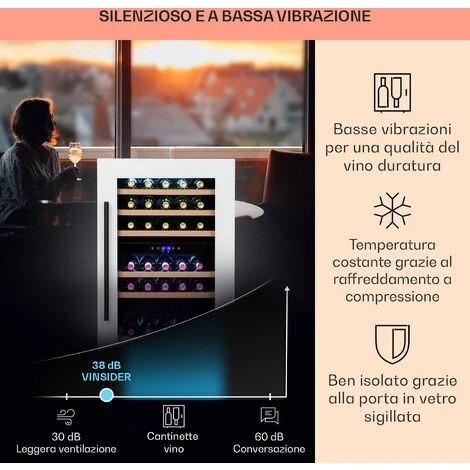 OPERATIVITA’ SILENZIOSA: Il motore silenzioso assieme all’elegante design rende la nostra cantinetta vino verticale il miglior frigo vino per la conservazione professionale di vino a casa tua, nei bar, ristorante, sale di degustazione e altro ancora.